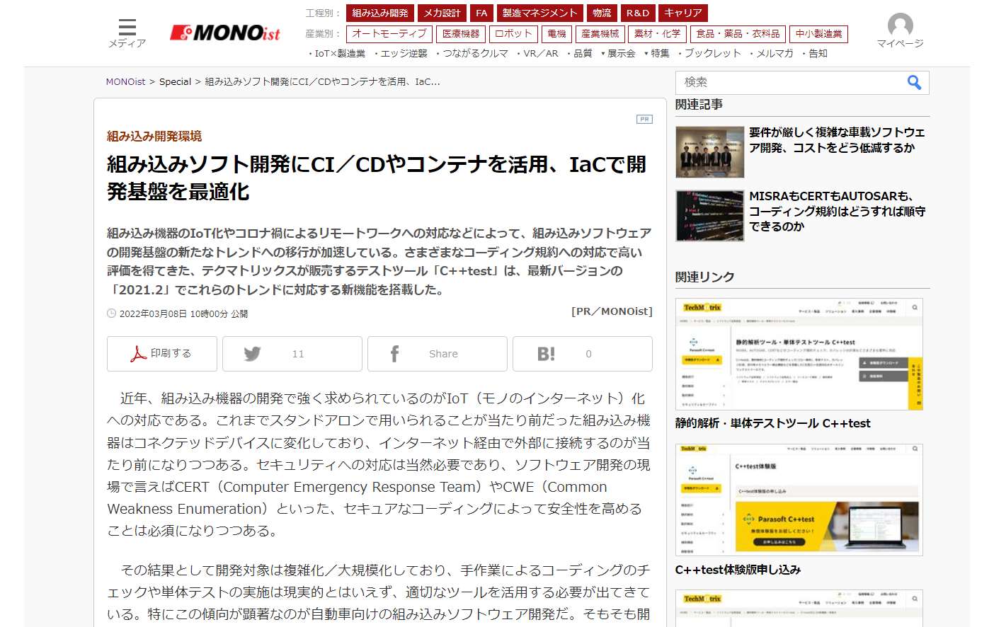 AI (10) APIテスト (21) AUTOSAR (13) C++test (12) C++言語 (7) C/C++test (82) C/C++ テスト (6) CI/CD (28) Docker (11) dotTEST (23) FSEG (5) java (18) Javaテスト (28) Jenkins (6) Jtest (48) JUnit (14) MISRA (22) Parasoft DTP (30) SOAtest (20) VB.NET (6) Virtualize (20) アプリケーションカバレッジ (6) イベント (8) インテリジェント分析 (6) オンラインセミナー (31) カバレッジ (12) コンプライアンス (21) コードカバレッジ (14) サービス仮想化 (15) セキュリティ (41) セーフティクリティカル (6) ソフトウェアテストのベストプラクティス (7) テスト自動化 (7) バーチャル展示会 (8) ユニットテスト (31) 動的解析 (9) 単体テスト (64) 機能安全認証 (7) 組み込みソフトウェア (19) 組み込み開発 (21) 組込み (14) 組込み開発 (7) 車載ソフトウェア開発 (8) 開発テスト (13) 静的解析 (95)