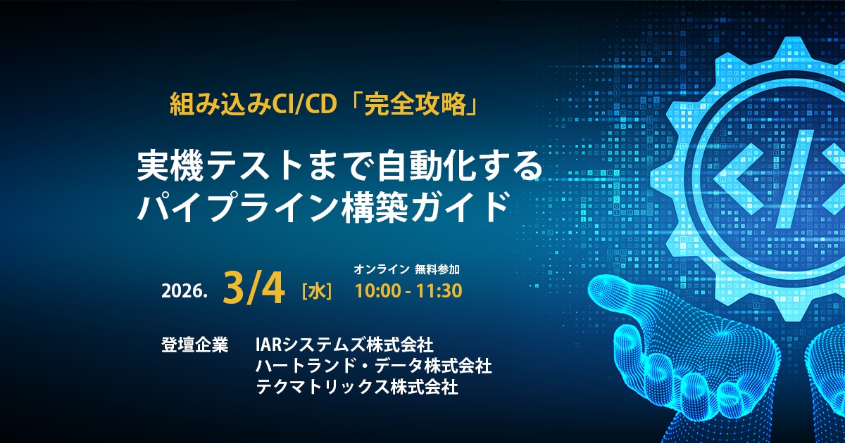 ctest_seminar_br_1200_20260304 by makimura|Published 2026年2月3日-at dimensions 1200 × 630 in 【3/4開催】組み込みCI/CD「完全攻略」 実機テストまで自動化するパイプライン構築ガイド Images navigation Previous Next