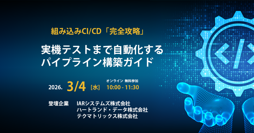 tmx_ogp_software-dev_202407 by makimura|Published 2026年2月3日-at dimensions 1200 × 630 in 【3/4開催】組み込みCI/CD「完全攻略」 実機テストまで自動化するパイプライン構築ガイド Images navigation Previous