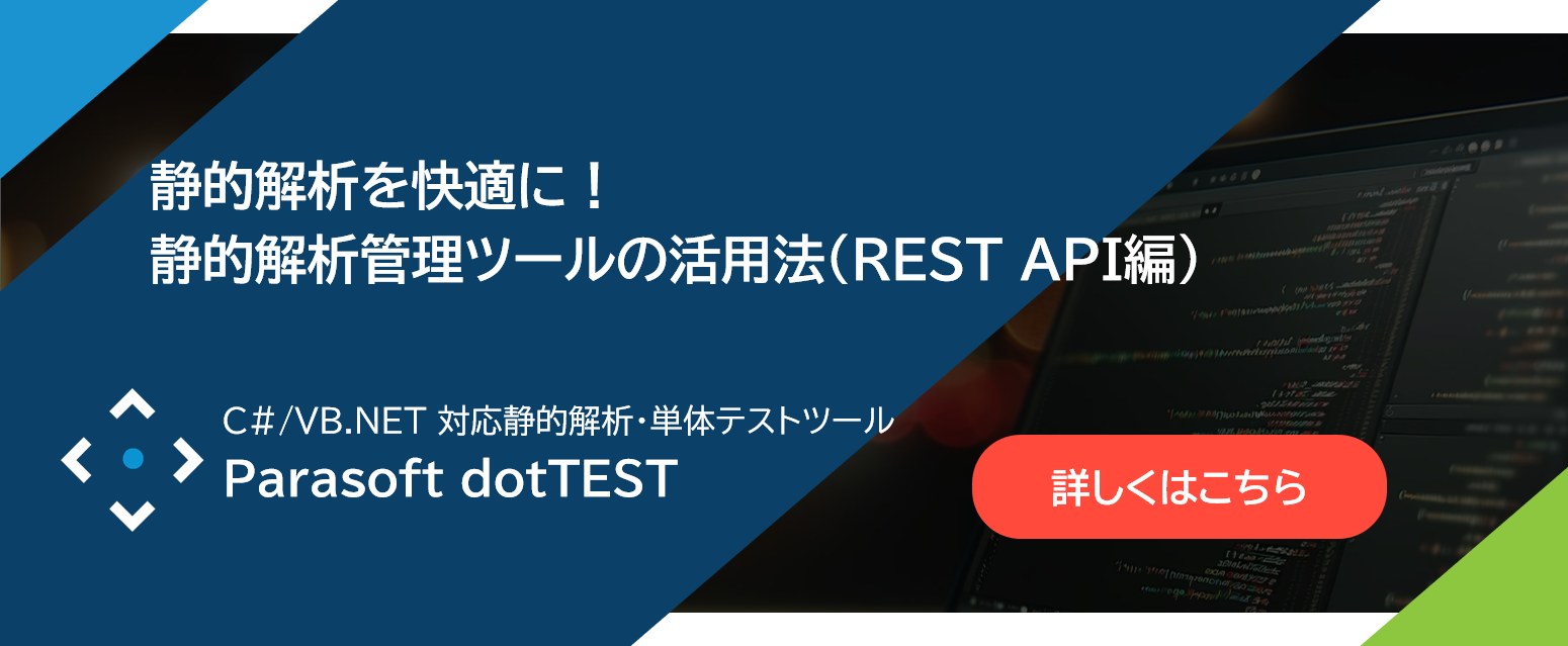 AI (9) APIテスト (21) AUTOSAR (13) C++test (12) C++言語 (7) C/C++test (81) C/C++ テスト (6) CI/CD (28) Docker (11) dotTEST (22) java (18) Javaテスト (28) Jtest (48) JUnit (14) MISRA (22) Parasoft DTP (30) SOAtest (20) UTA (5) VB.NET (6) Virtualize (20) アプリケーションカバレッジ (6) イベント (8) インテリジェント分析 (6) オンラインセミナー (29) カバレッジ (12) コンプライアンス (21) コードカバレッジ (14) サービス仮想化 (15) セキュリティ (41) セーフティクリティカル (6) ソフトウェアテストのベストプラクティス (7) テスト自動化 (7) バーチャル展示会 (8) ユニットテスト (31) 動的解析 (9) 単体テスト (64) 機能安全認証 (7) 組み込みソフトウェア (18) 組み込み開発 (21) 組込み (14) 組込み開発 (7) 継続的テスト (5) 車載ソフトウェア開発 (7) 開発テスト (13) 静的解析 (94)