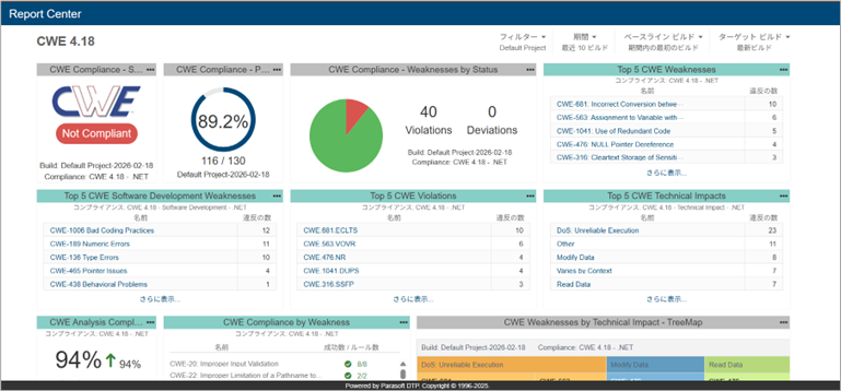 CWE 4.18とCWE Top 25 2024、CWE Top 25 2024 + On the Cuspが新たに追加されました。セキュリティコンプライアンスレポート(遵守サマリーレポートや逸脱のレポート)は、8種類のレポートを表示・出力できます。