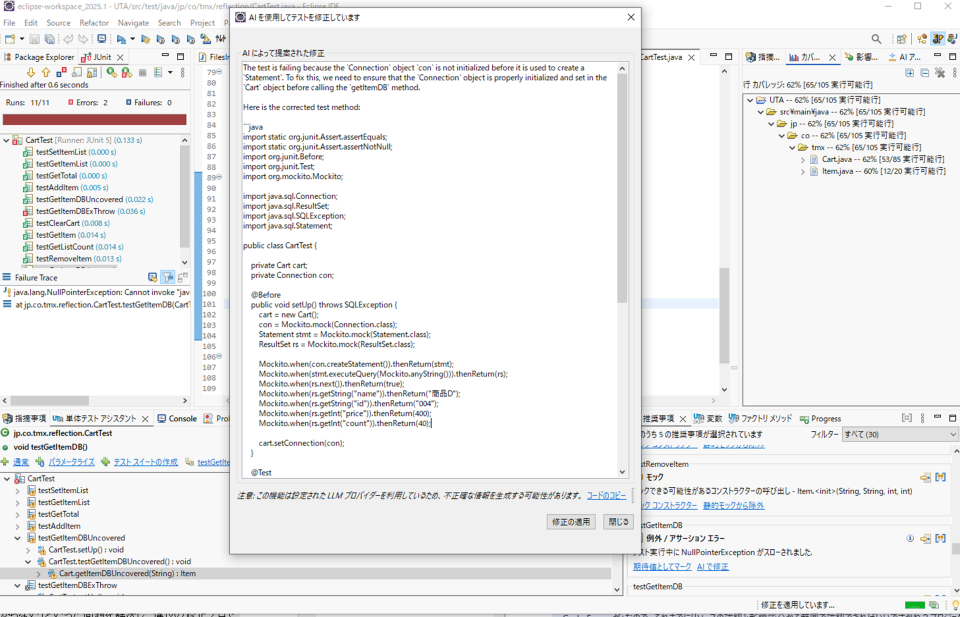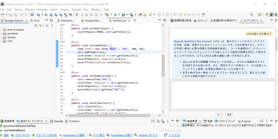 実行に失敗したテストケースに対して、AIが修正案を掲示する、単体テストアシスタント機能が追加されました。テストケースの改善にAIを利用することで、テスト効率の向上に貢献します。